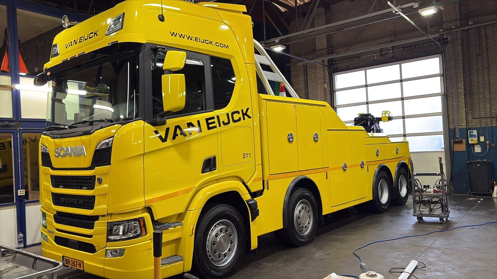 hier bij een foto van een vrachtwagen die ik van buiten en binnen heb gedaan voor Scania dealer doe ik heel veel vooral nieuwe vrachtwagens klaar maken voor verkoop